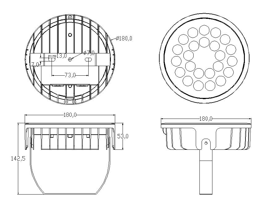 发光角度:10°/15°/30/45°/60°产品尺寸:∮180*142MM